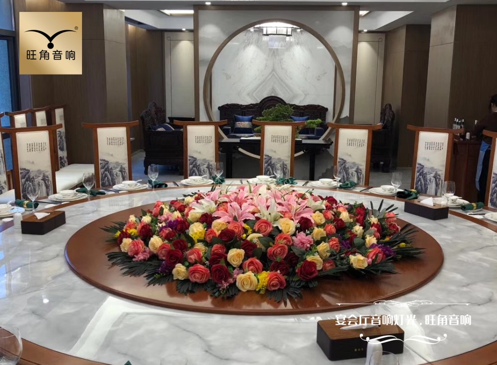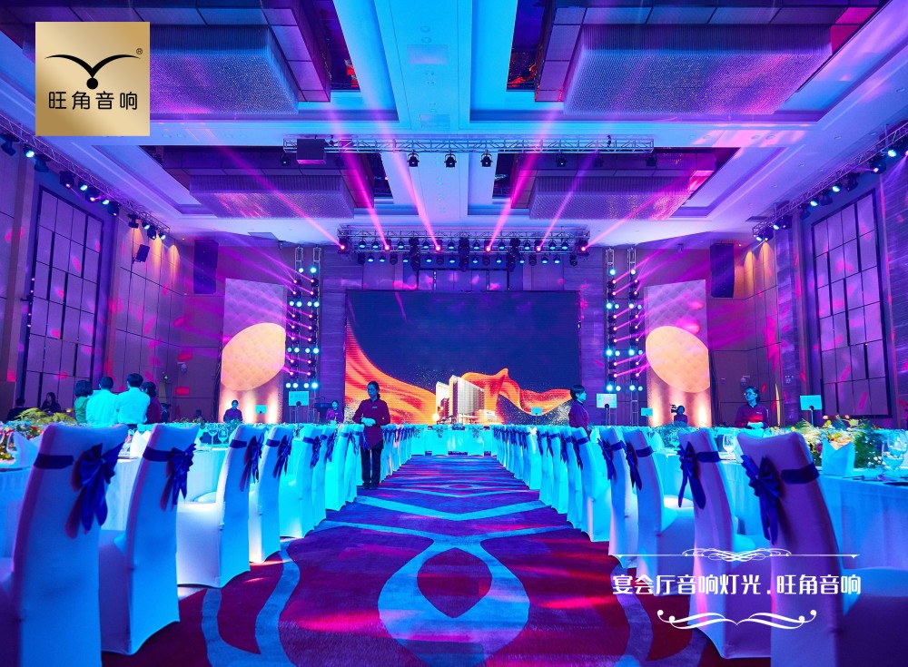宴会厅的场景和音响灯光设计打破了我们对中式宴会的固有印象,既保留了一些中式元素,又能突破传统红色元素,